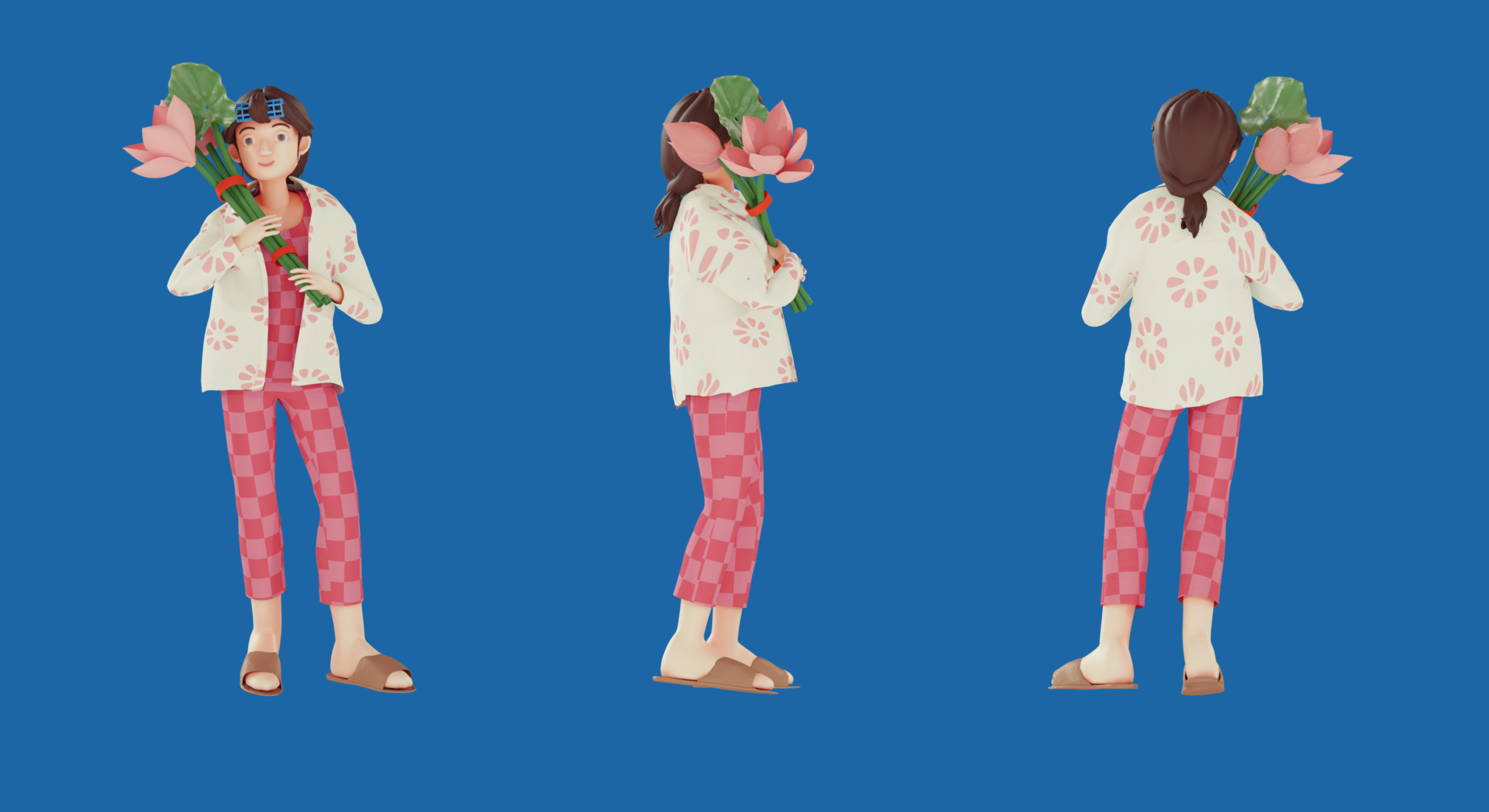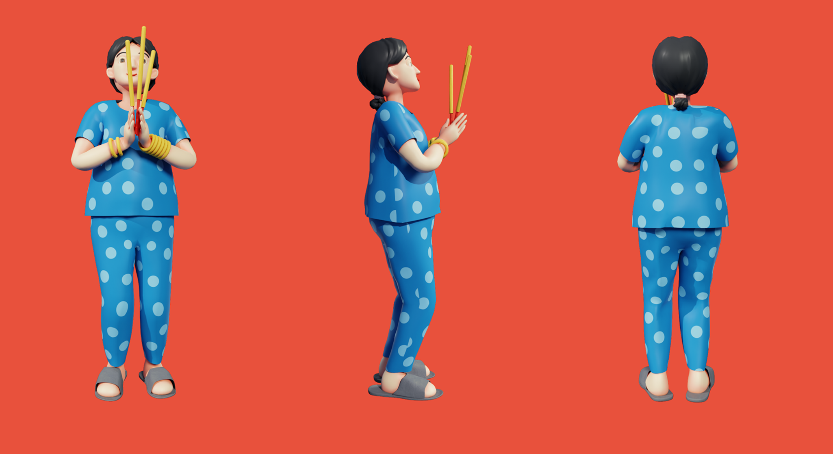 For the span of this course, we work with 3 themes which represent Saigon culture significantly: spiritual, fabric, and florist. For each of the route, 3D assets were created accordingly based on extensive research.