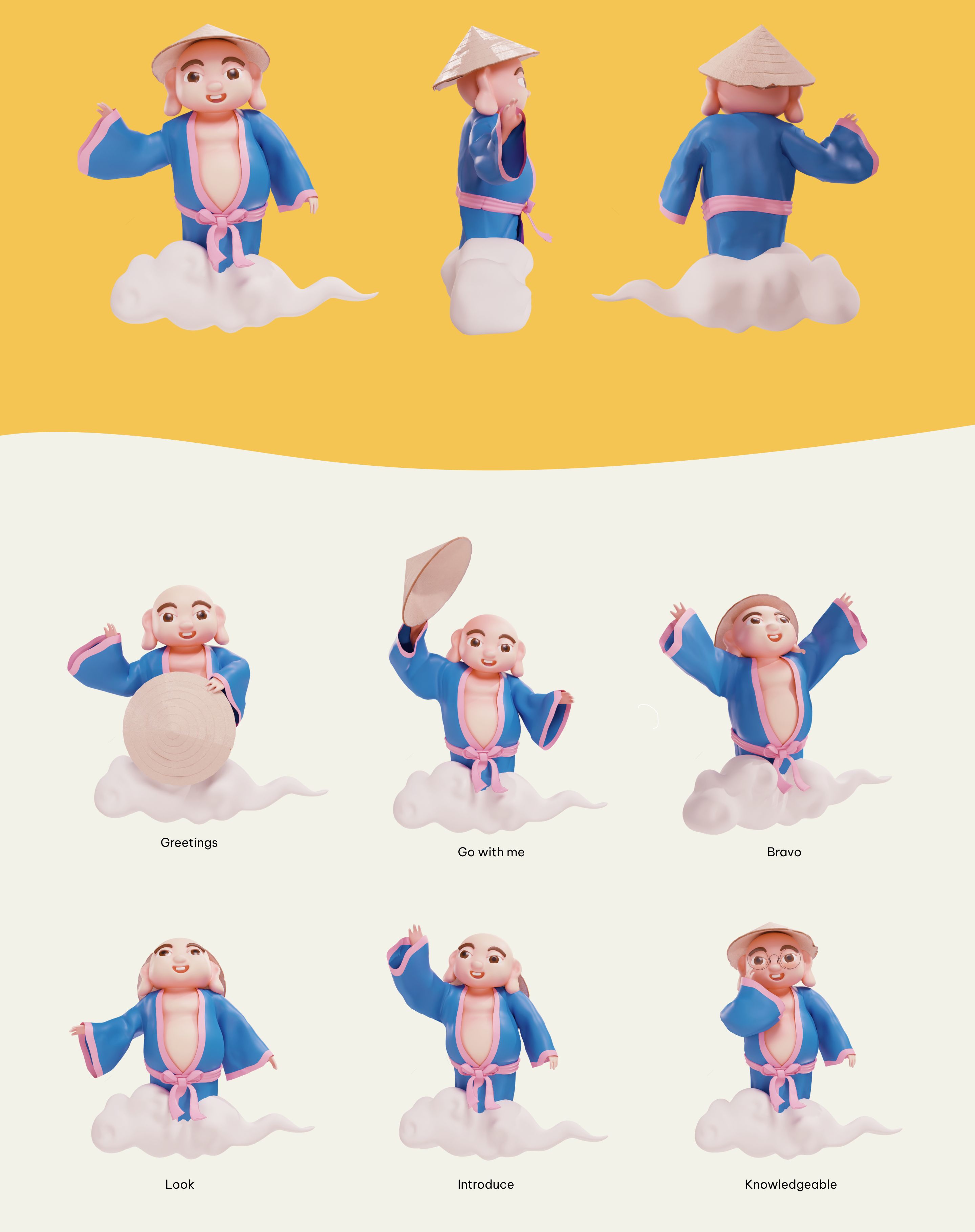 There were many depictions of Vietnamese Land Genie; however, they share common characteristics: long ears and big belly. At the same time, Land Genie must be friendly and approachable; therefore, a stylized approach is introduced with rounded forms.