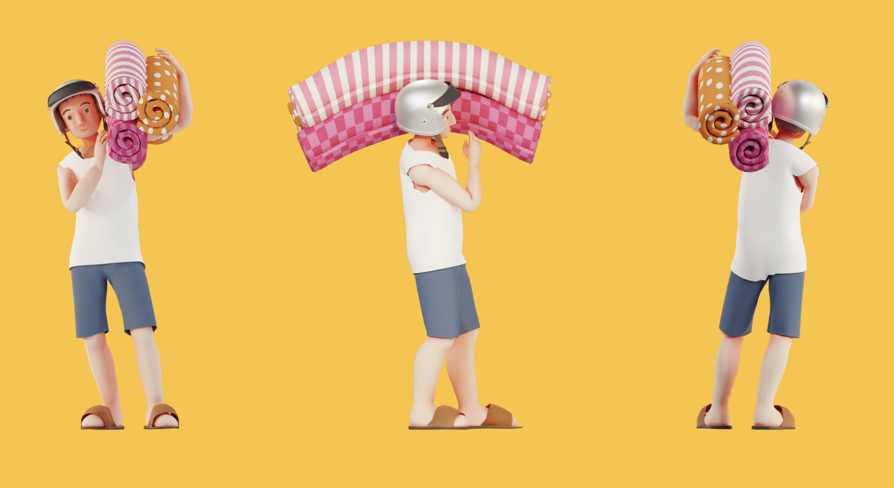 young men carrying fabric rolls on 1 shoulder. Most of the time, they don’t even